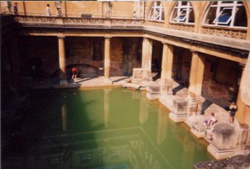 街中のTourist Informationに行って気球と川下りのパンフレットを探したが、どっちも無かったのでとりあえずRoman Bath Museumに入る。入場料は£6.70(学生料金無し)。ここは2000年前にローマ人達が築いた大浴場の遺構である。昔々、癩病を患っていたBladud王子がここに偶然温泉を発見し、その温泉のお陰で癩病が治ったので喜んで自分の名を付けた。長い間にBladudが転じてBathになり、更にBathは「お風呂」の語源になった。これがBathに伝わる起源である。