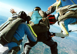 簡単に書くと飛行機またはヘリコプターで上空約12500フィート(約3700メートル・大体フィートに0.3を掛けるとメートルになる)まで上がり、空中に飛び出し(EXITと云う)、ある時間フリーフォール(自由落下)し、各自の技量や目的に応じた高度でパラシュートを開き、位置をコントロールしてドロップゾーン(DZ)の定められた場所に降下するスポーツである。フリーフォール中は常に胸の位置に取り付けられた高度計をチェックする必要がある。熟練者は通常2000〜3000フィート(600〜900メートル)でパラシュートを開くが、免許取得中のスチューデントや初心者は4000〜5000フィート(1200〜1500メートル)でパラシュートを開く事が求められる。これは万が一メインパラシュートが開かなかった場合に、リザーブパラシュートを開く為の充分な対処時間を確保する為である。熟練者はこの手順が素早くできる(とされている)ので、比較的低い高度でパラシュートを開く事が認められ、より長くフリーフォールを楽しむ事ができる。